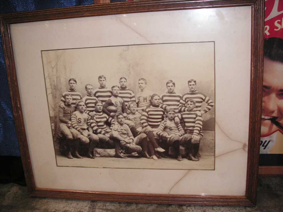 PhotoStripedJersy.JPG (54148 bytes)Next up was a c1890 photo of a football team wearing classic striped jerseys, some players had the letter "SM" on their chest, 21 1/2" wide x 17" tall, $300.00