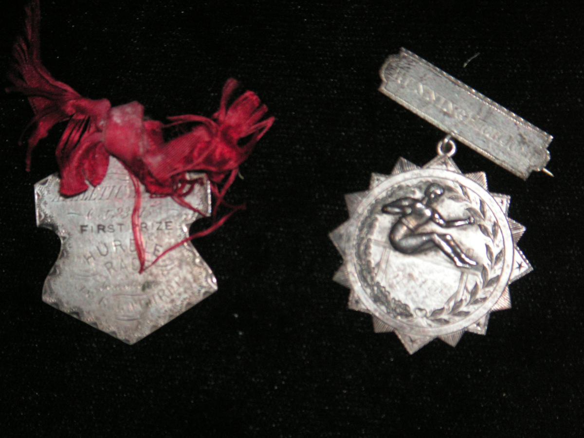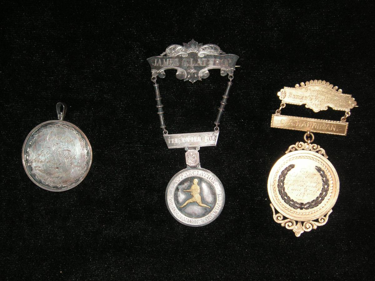 early American track medals from the 1876 era, won by James G. Lathrop,