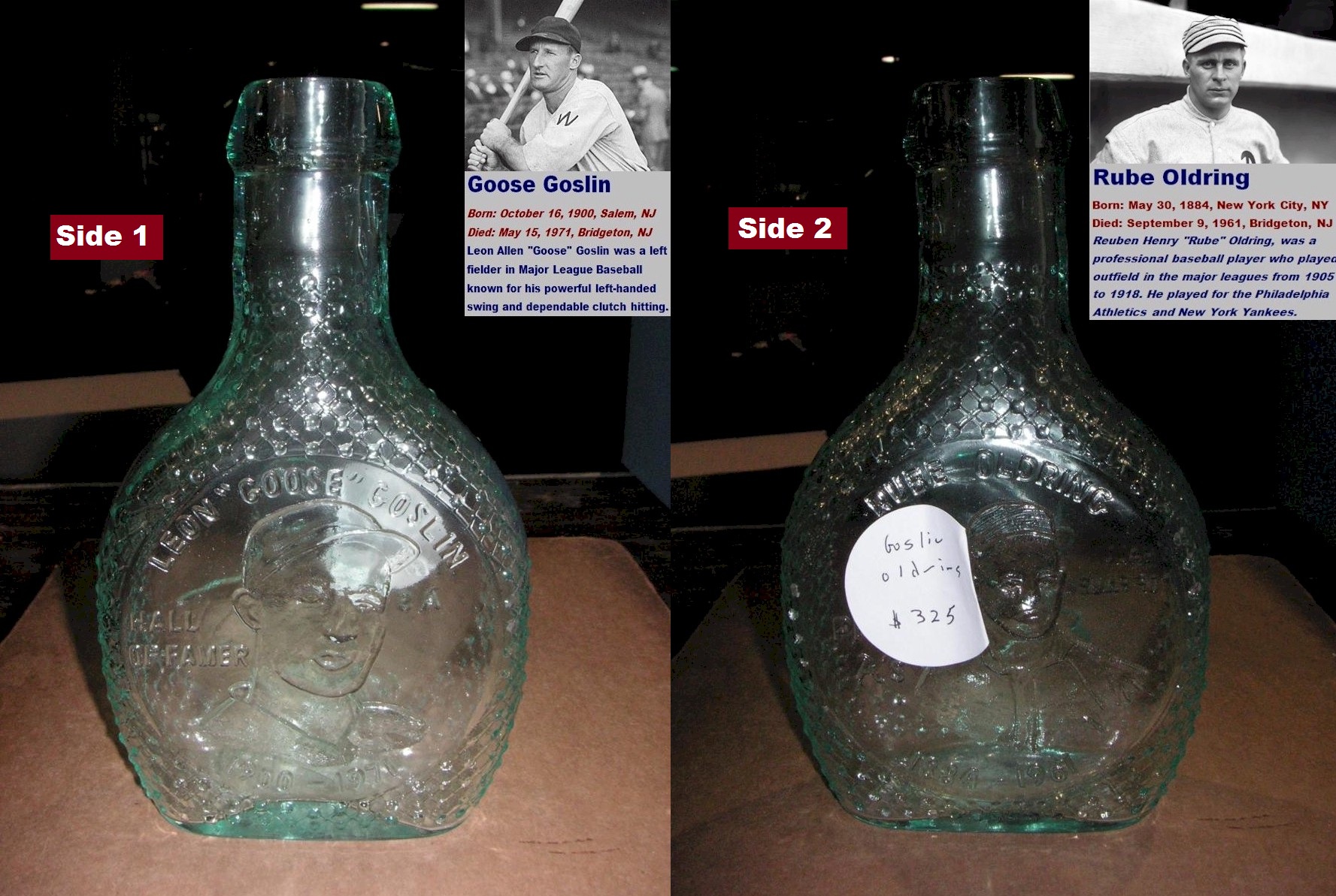 rare two sided bottle with Rube Oldring on one side and Leon Goose