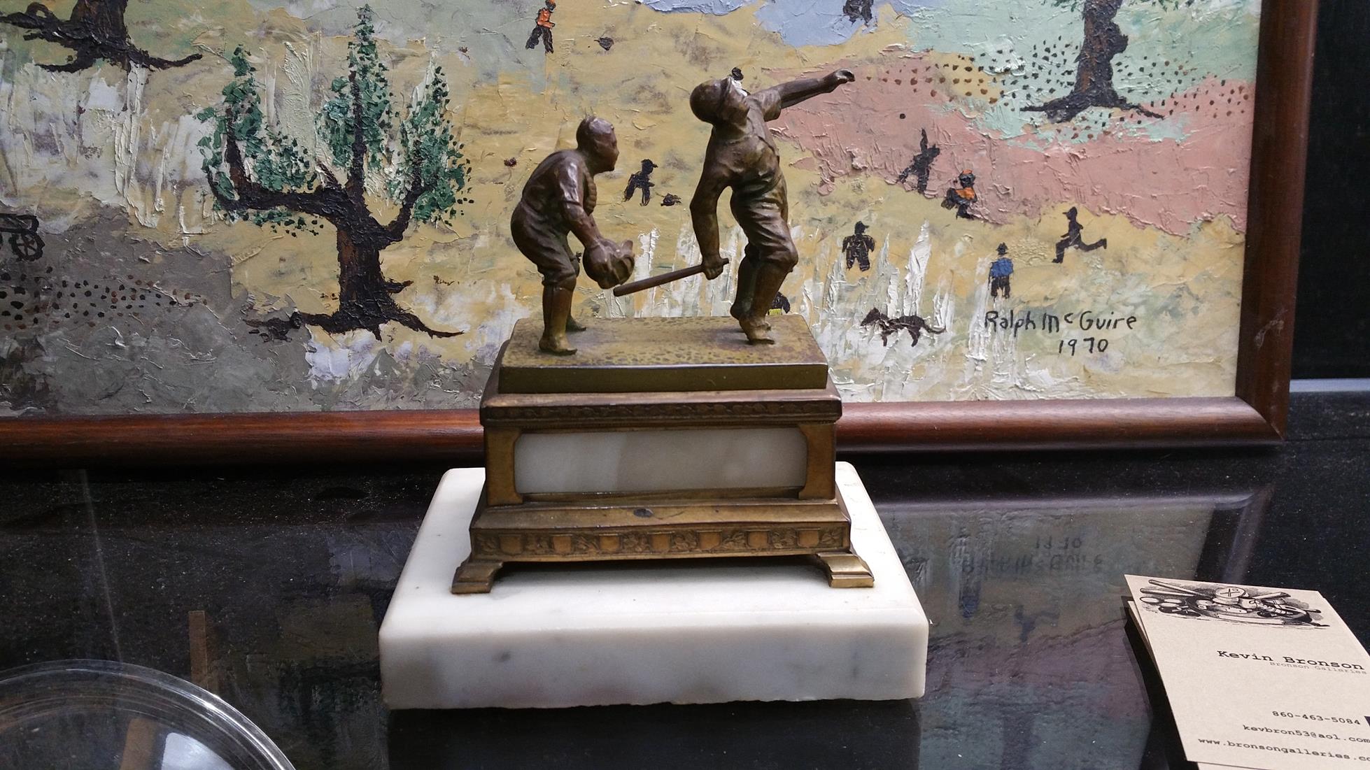 fantastic little 5 1/2" tall white metal baseball statue