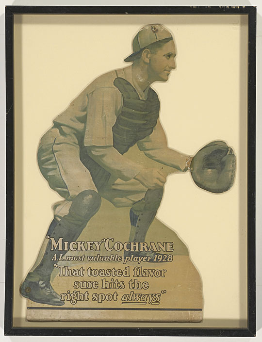 24" x 31 1/2" c1929 Mickey Cochrane Die-Cut Tobacco Advertising Sign (partial sign)