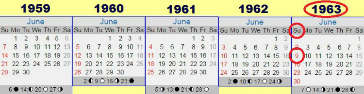 what year a Sunday June 9th fell on within those five