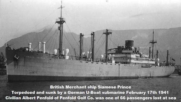 On February 17th 1941, at the age of 56 Albert Penfold was lost at sea when the MV Siamese Prince was torpedoed by a German