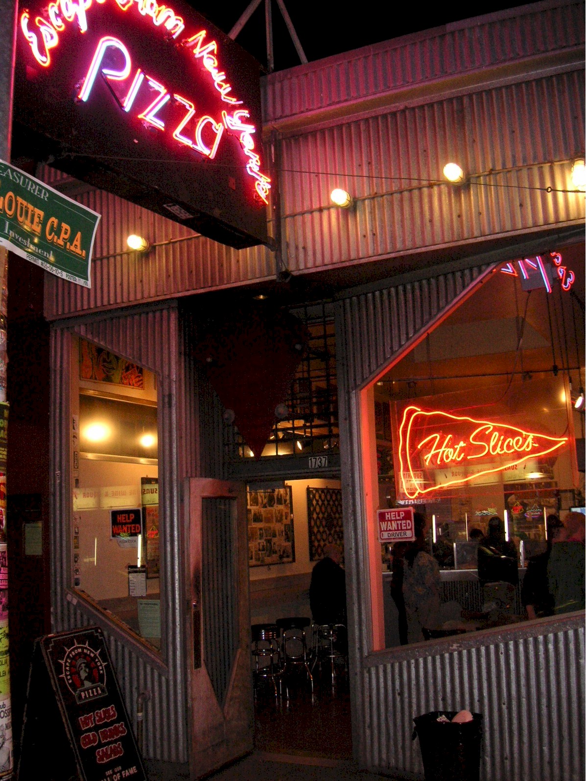 Carlton says, Try the potato pesto pizza with fresh garlic, it's exceptional, they serve it by the slice! Gritty neighborhood, tough parking, but worth it.