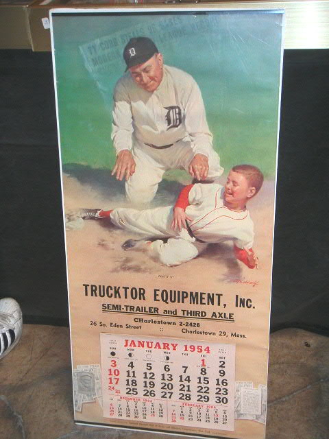 Cobb. You see these kinds of calendars offered in the hobby and antiques world occasionally. They were produced by the Brown and Biglow company with different baseball stars. This was a nice one in very good condition. 33 3/8” tall by 16” wide, $350.00