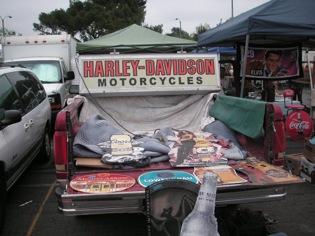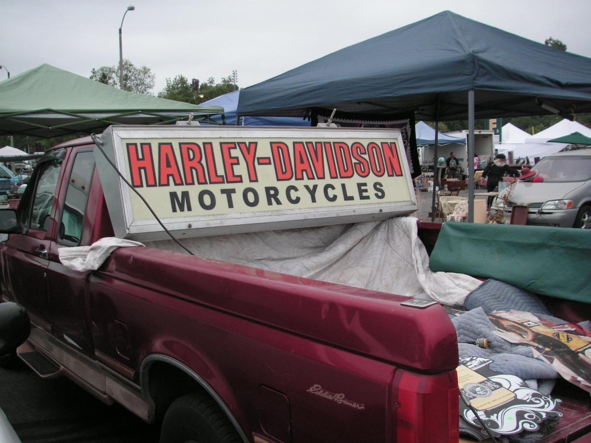 About a half hour into the show I saw a really nice double sided Harley Davidson illuminated sign…c1970 I’d say…dealer said it was already sold…said sold first thing….which meant while it was still dark….I didn’t get there till like 6:15AM…I asked how much…said $1,400.00…I figured some Angeleno got it… I imagined some 60 year old retired machinist with a great collection of advertising